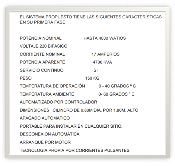 Ficha técnica de Generador Electromagnético